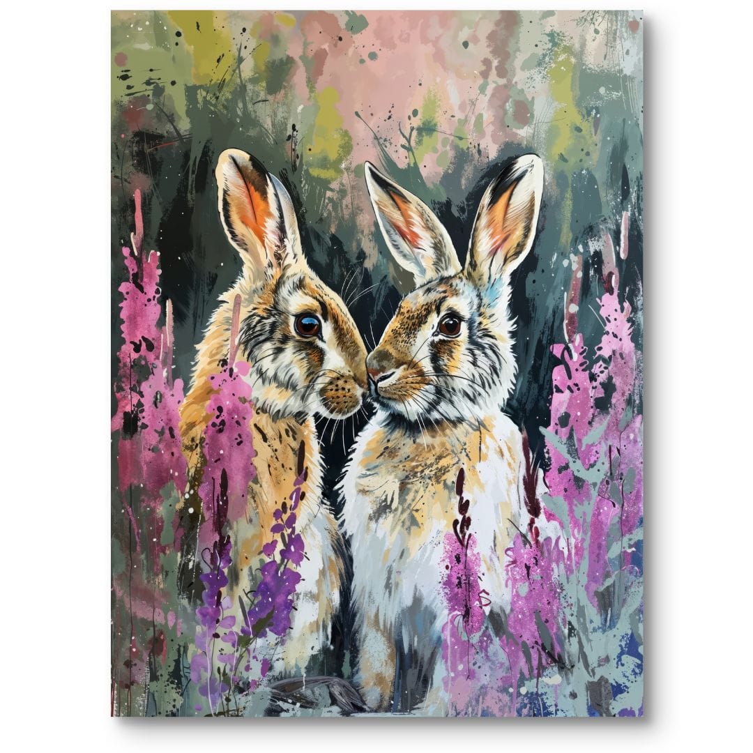 Prezentowany obraz na płótnie przedstawia parę uroczych królików zanurzonych wśród polnych kwiatów. Realistycznie oddane futerka oraz subtelny, naturalny wyraz zwierząt budują autentyczną atmosferę sielanki. Królik – symbol niewinności i harmonii z naturą – doskonale współgra z kwiatowym tłem, wzmacniając poczucie spokoju i radości.