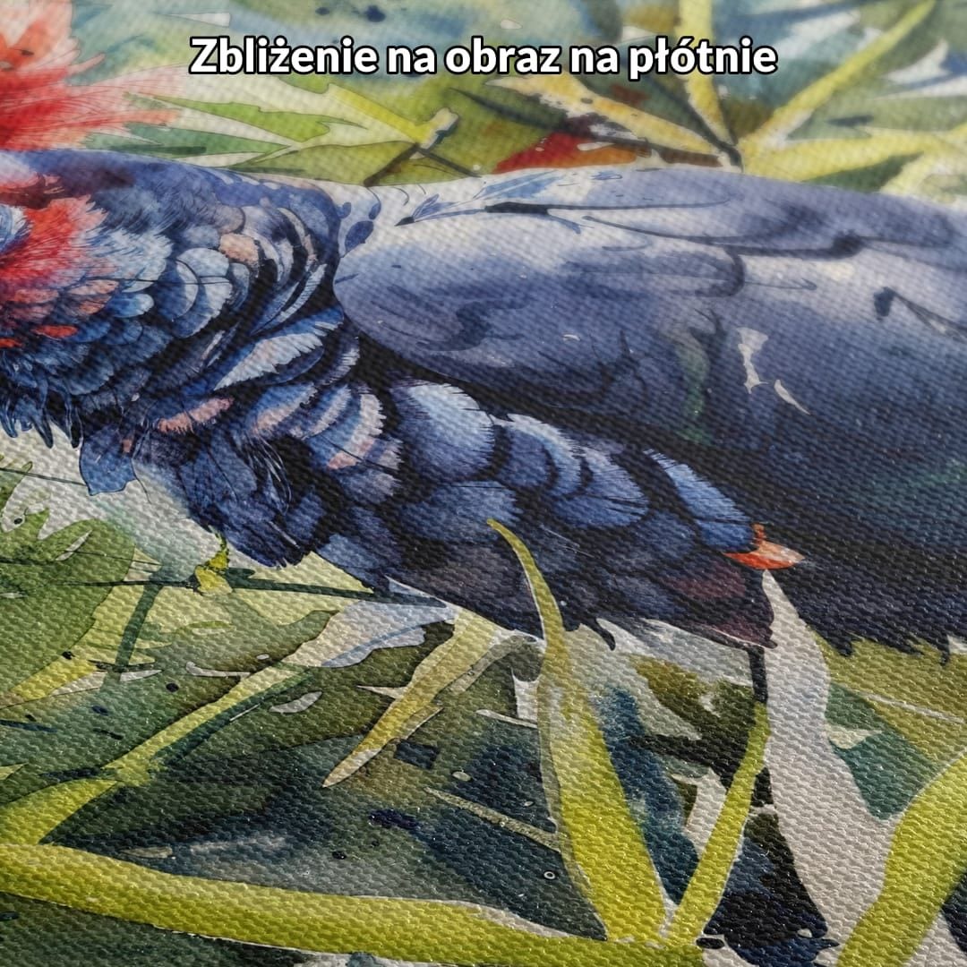 Ten niepowtarzalny obraz na płótnie ukazuje barwną papugę dumnie siedzącą wśród bujnej, tropikalnej zieleni. Motyw ptaków, a zwłaszcza papug, od lat fascynuje artystów, symbolizując bogactwo natury, radość życia i element egzotyczny. Różnorodna roślinność w tle dodaje całej kompozycji głębi oraz dynamiki, pozwalając odbiorcy dosłownie zanurzyć się w tropikalnej aurze.
