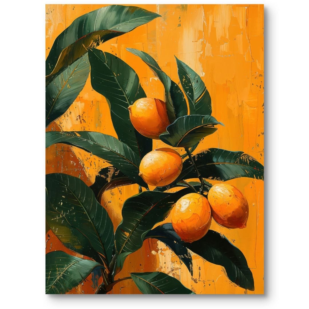 Obraz emanuje pogodą ducha i pozytywną energią dzięki ciepłym, żywym kolorom oraz motywowi natury. Pomarańcze symbolizują obfitość, zdrowie i witalność, a soczysta zieleń liści przynosi skojarzenia ze wzrostem i harmonią. Doskonały wybór dla osób, które cenią naturalne motywy i chcą tchnąć do swojego wnętrza dawkę optymizmu.