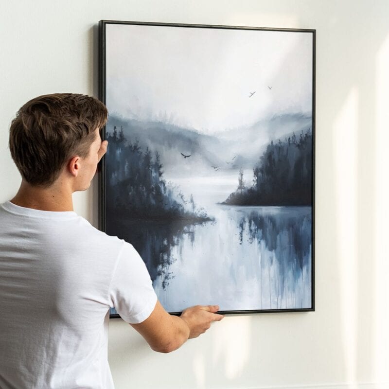 Obraz idealnie komponuje się z wnętrzami w stylu minimalistycznym, skandynawskim czy nowoczesnym. Najlepiej prezentuje się w jasnych, przestronnych pomieszczeniach, do których wnosi lekkość i świeżość. Znakomicie sprawdzi się jako wyjątkowa dekoracja w salonie, sypialni czy domowym gabinecie, gdzie stworzy atmosferę spokoju oraz inspiracji.