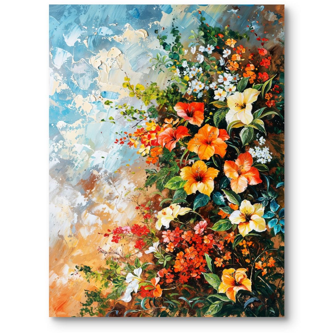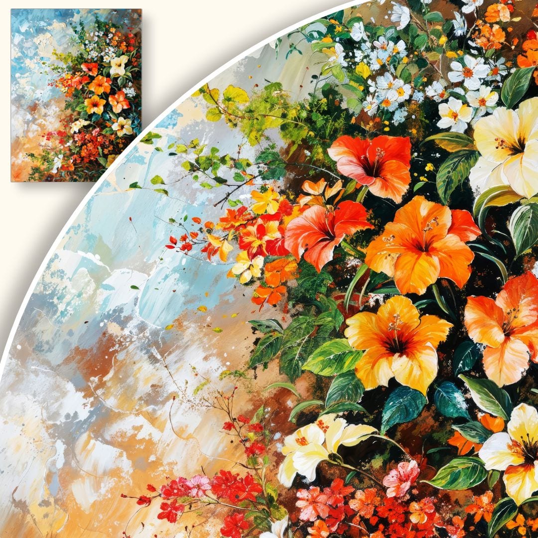 Harmonijnie zaaranżowana kompozycja emanuje dynamiką, a jednocześnie pozostaje spójna i wyważona. Umiejętna gra światłem i zróżnicowane odcienie ożywiają kwiaty, czyniąc z obrazu centrum uwagi każdej przestrzeni.