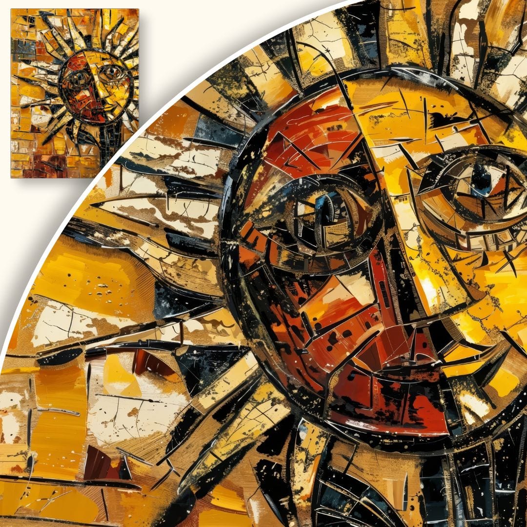 Kubizm, zainicjowany przez Pabla Picassa i Georges’a Braque’a na początku XX wieku, zrewolucjonizował spojrzenie na formę i przestrzeń. Abstrakcyjne ujęcie słońca w prezentowanym obrazie to bezpośrednie nawiązanie do eksperymentów Picassa czy Fernanda Légera, którzy z geometrycznych kształtów tworzyli ekspresyjne, dynamiczne kompozycje. To sztuka, która wymyka się jednoznacznym interpretacjom, zachęcając do osobistego odbioru.