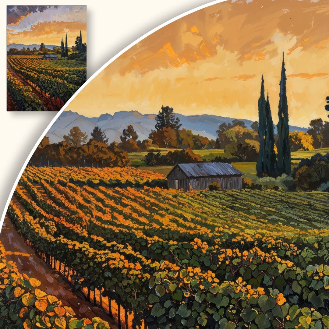 Obraz polecamy wszystkim miłośnikom pejzaży, pasjonatom natury, a także wielbicielom win i tradycji winiarskich. To znakomity pomysł na prezent – idealny na urodziny, rocznicę czy jako wyjątkowy upominek bez okazji, który wniesie do wnętrza niepowtarzalny klimat.