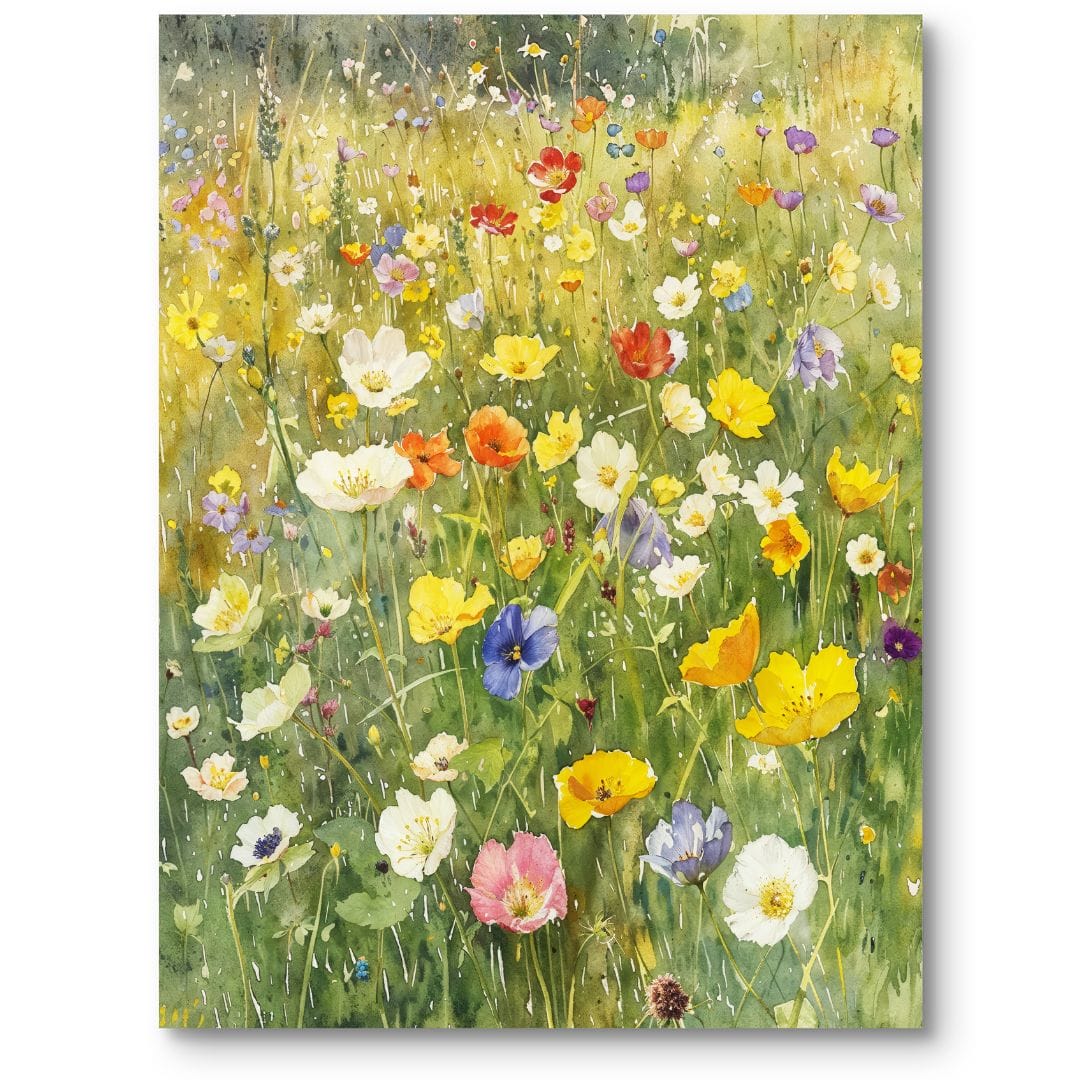 - Obraz kwiatowej łąki w technice akwareli