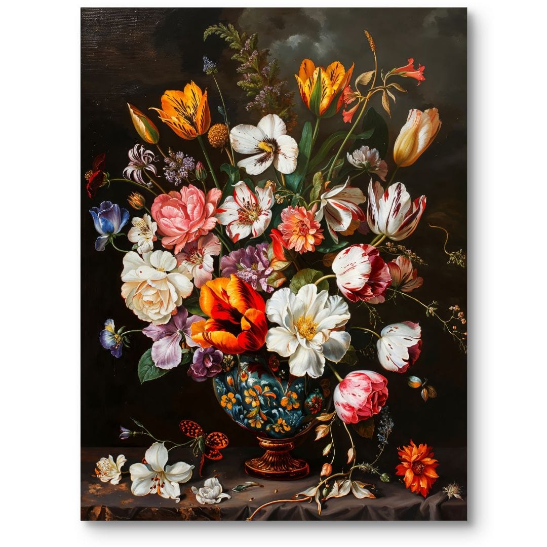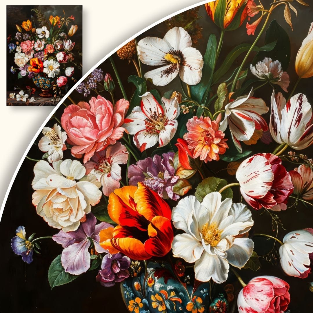 Obrazy przedstawiające martwą naturę z kwiatami były niezwykle popularne w XVII wieku, szczególnie w malarstwie holenderskim i flamandzkim epoki baroku. Dzieła tak znakomitych twórców jak Jan Davidsz de Heem, Rachel Ruysch czy Ambrosius Bosschaert zachwycały niesamowitą precyzją i symboliką. Kwiaty często ukazywano jako metaforę nietrwałości i przemijania, czyli tzw. vanitas – motyw obecny w sztuce tamtych czasów.