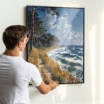 - Zawieś ten obraz w przestronnym salonie jako centralny punkt, wokół którego stworzysz harmonijną strefę odpoczynku — najlepiej w towarzystwie mebli w jasnych odcieniach i naturalnych dodatków, takich jak lniane zasłony czy drewniane elementy.