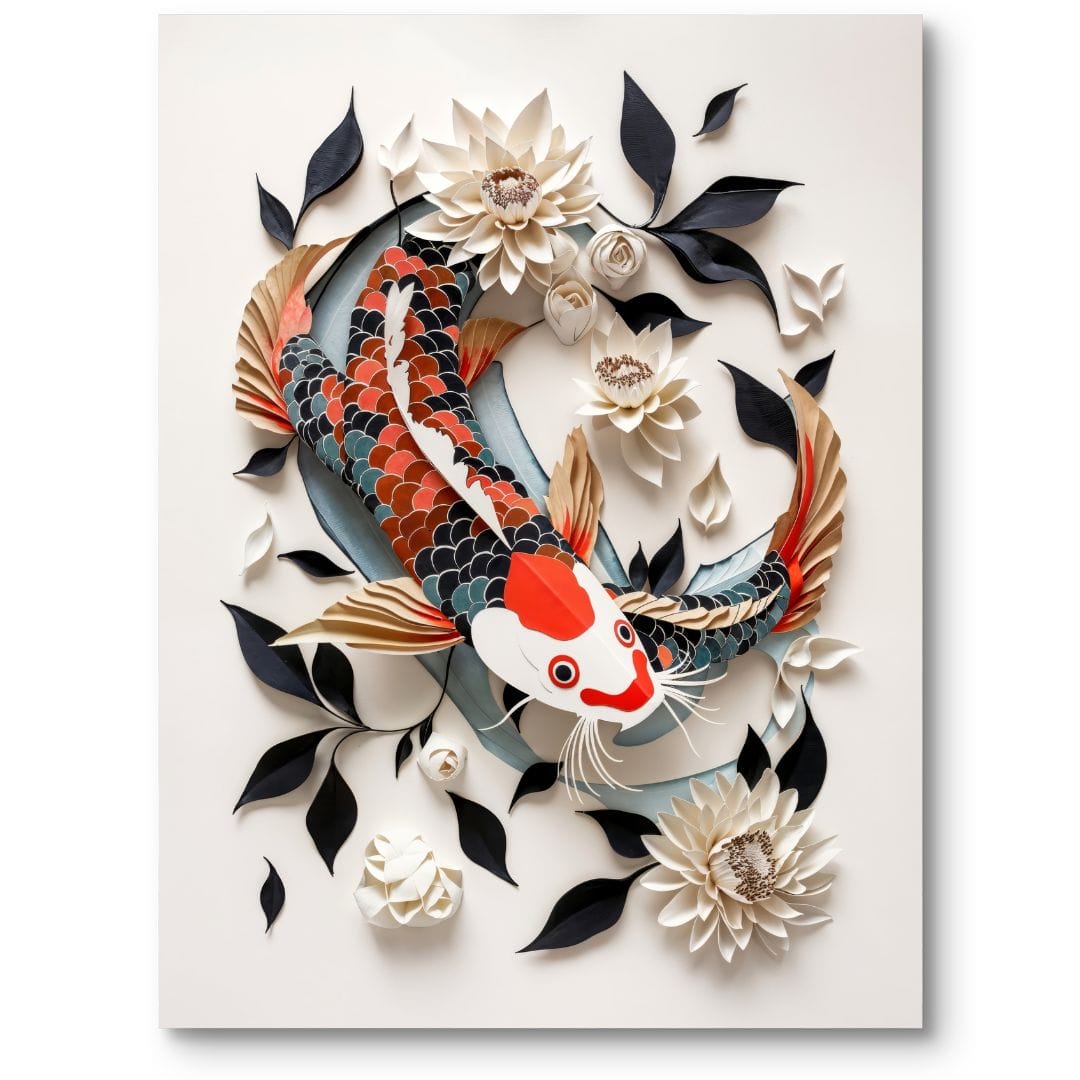 Obraz na płótnie przedstawia majestatycznego karpia koi otoczonego subtelnymi liśćmi lilii – motyw silnie zakorzeniony w kulturze Japonii. Symbolika karpia koi reprezentuje nie tylko siłę i wytrwałość, lecz także szczęście oraz życiowy balans. Obecność lilii wzbogaca kompozycję o nutę lekkości i ponadczasowej elegancji.