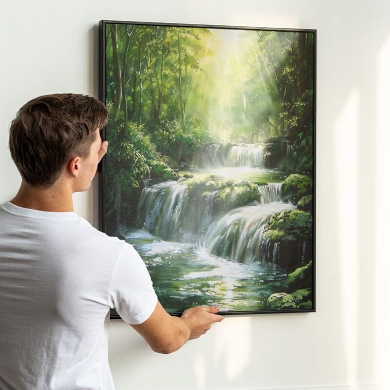 Wodospady od wieków były symbolem siły natury i źródłem inspiracji w sztuce. Goethe powiedział kiedyś: „Cisza lasu jest echem wieczności” – wybierając pejzaż przedstawiający wodospad, wprowadzasz do swojego domu odrobinę tej ponadczasowości.