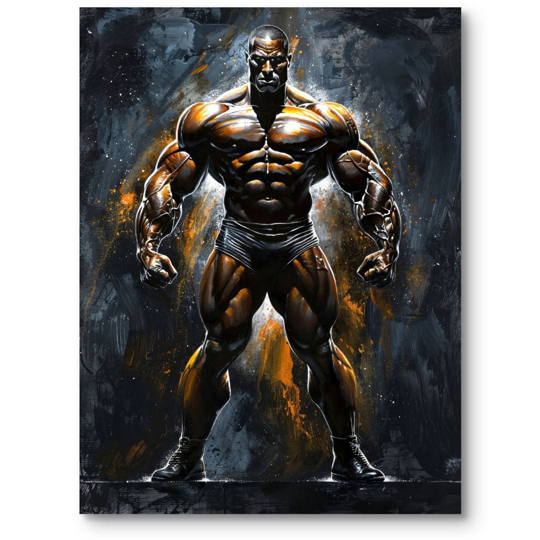 Prezentowany obraz to dynamiczna kompozycja ukazująca muskularnego mężczyznę o doskonale wyrzeźbionej sylwetce. Bohater tej pracy przywodzi na myśl postacie z kultowych komiksów i superbohaterów, emanując potężną energią oraz niezłomnością. Centralne umiejscowienie postaci sprawia, że jej siła staje się wręcz namacalna, a inspiracja kulturystyką wyczuwalna w każdym detalu.