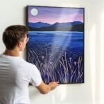 - Wybierz subtelną ramę w kolorze jasnego drewna lub matowej czerni, by podkreślić chłodną kolorystykę obrazu i dodać elegancji.