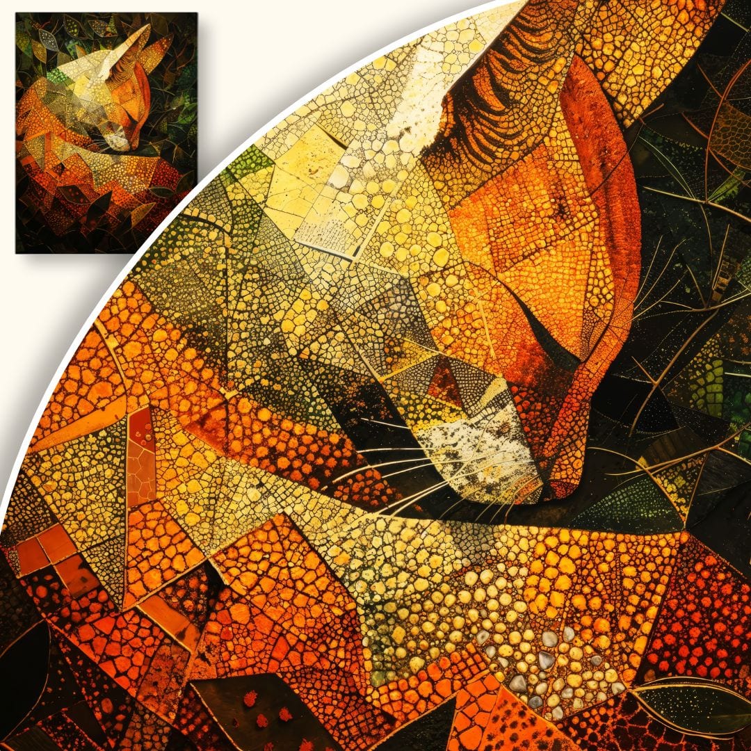 Kubizm zrewolucjonizował sztukę na początku XX wieku za sprawą takich artystów jak Pablo Picasso czy Georges Braque. Inspiracje mozaiką sięgają natomiast antyku i sztuki bizantyjskiej. Połączenie tych dwóch tradycji w tym obrazie to ukłon w stronę nowoczesnej reinterpretacji klasyki, która dodaje wnętrzom wyjątkowego charakteru.