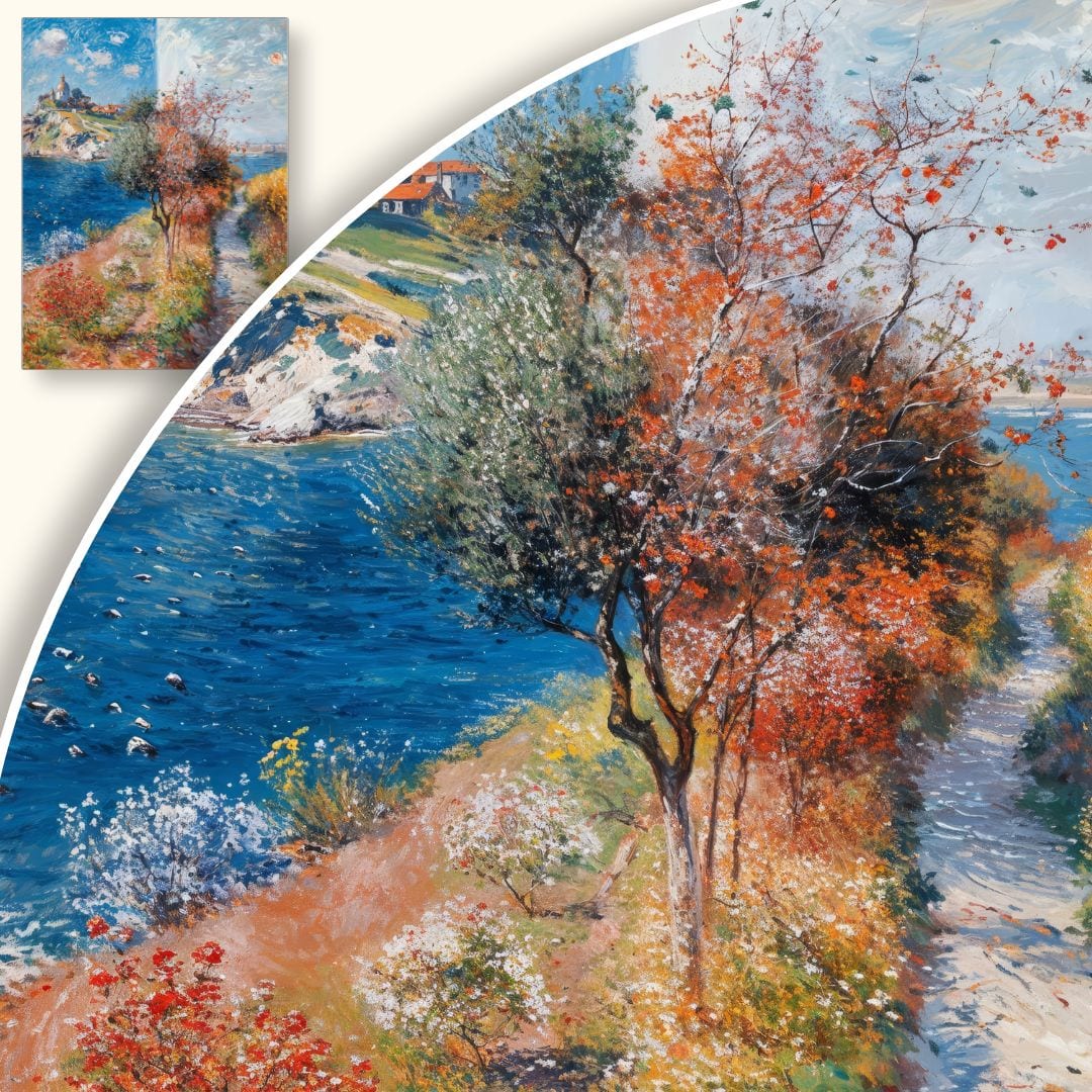 Impresjonizm narodził się w XIX-wiecznej Francji jako odpowiedź na pragnienie uchwycenia ulotnych chwil i naturalnego światła. Artyści tacy jak Claude Monet, Camille Pissarro czy Alfred Sisley rozsławili motywy pejzażowe – właśnie takie, jak prezentowany tu wiejski krajobraz. Ich dzieła są dziś synonimem lekkości i subtelnej gry kolorów.