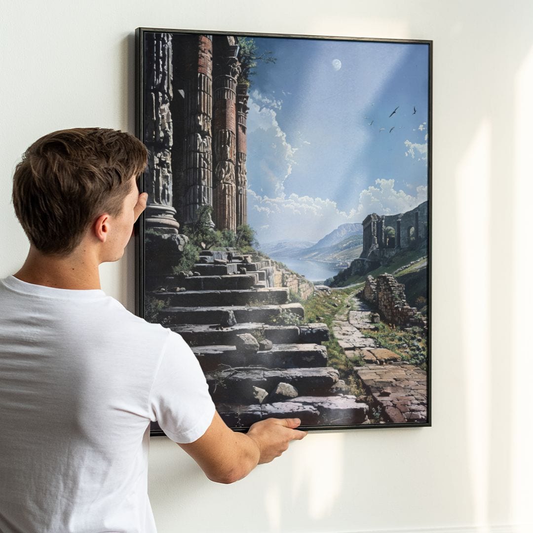 Sztuka inspirowana ruinami często gości w kolekcjach światowych galerii i muzeów – jest nawiązywaniem do nieustającej relacji człowieka z czasem, rozwojem i dziedzictwem kulturowym. Ten obraz może stać się częścią właśnie Twojej prywatnej kolekcji.