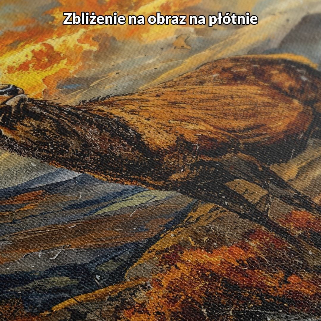 - Obraz świetnie prezentuje się nad kominkiem lub sofą w salonie, w otoczeniu naturalnych, drewnianych dodatków.