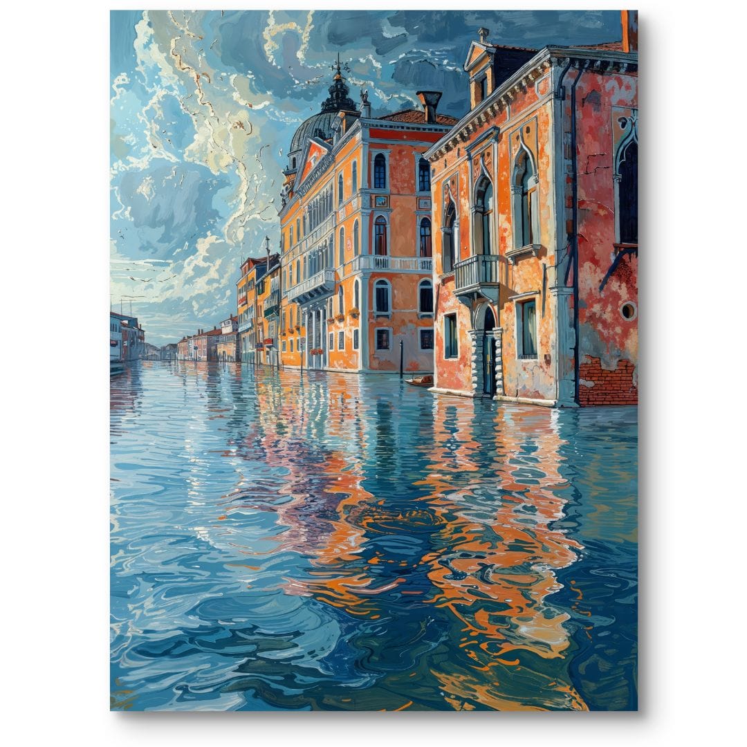 Obraz emanuje atmosferą spokoju i nostalgii. Odbicia w lustrze wody przypominają o ulotności chwil, zaś starożytna architektura symbolizuje ponadczasowe piękno Wenecji i jej historie. Dzieło zaprasza do zadumy oraz zapala w wyobraźni tęsknotę za podróżą i odkrywaniem świata.