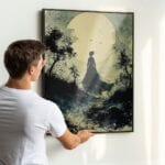 Księżyc od wieków symbolizuje tajemniczość i kobiecość – w wielu kulturach był utożsamiany z boskością i magią. To sprawia, że dzieło doskonale wpisuje się w poszukiwanie indywidualizmu i unikalnego wyrazu we współczesnych aranżacjach wnętrz.