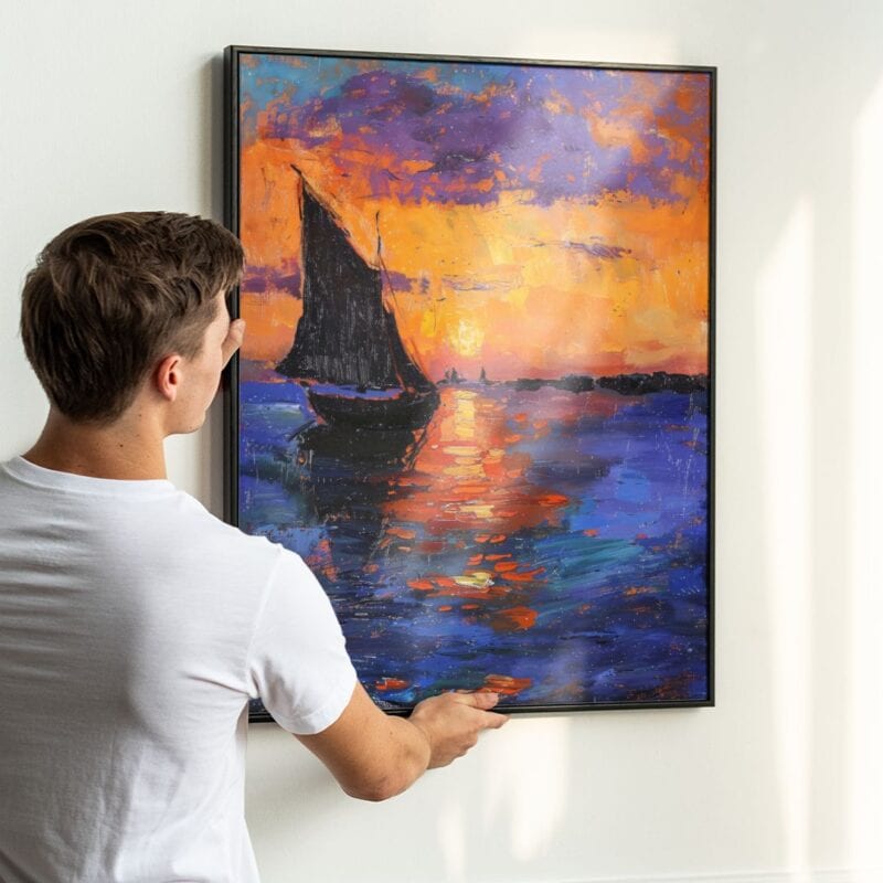 Sztuka impresjonistyczna od XIX wieku fascynuje miłośników malarstwa swoją umiejętnością uchwycenia chwili i zjawisk świetlnych. Inspiracją dla takich pejzaży były dzieła Claude’a Moneta czy Alfreda Sisleya, którzy uwielbiali malować wodę, zmieniające się niebo i subtelne refleksy światła. Motyw łodzi na wodzie był często obecny także u polskich impresjonistów, takich jak Józef Pankiewicz czy Władysław Podkowiński – symbolizując wolność i podróż ku nieznanemu.