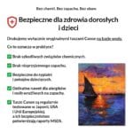 Tusze Canon są testowane przez niezależne instytucje w Japonii, USA i Unii Europejskiej, a ich skład i bezpieczeństwo potwierdzają raporty MSDS.