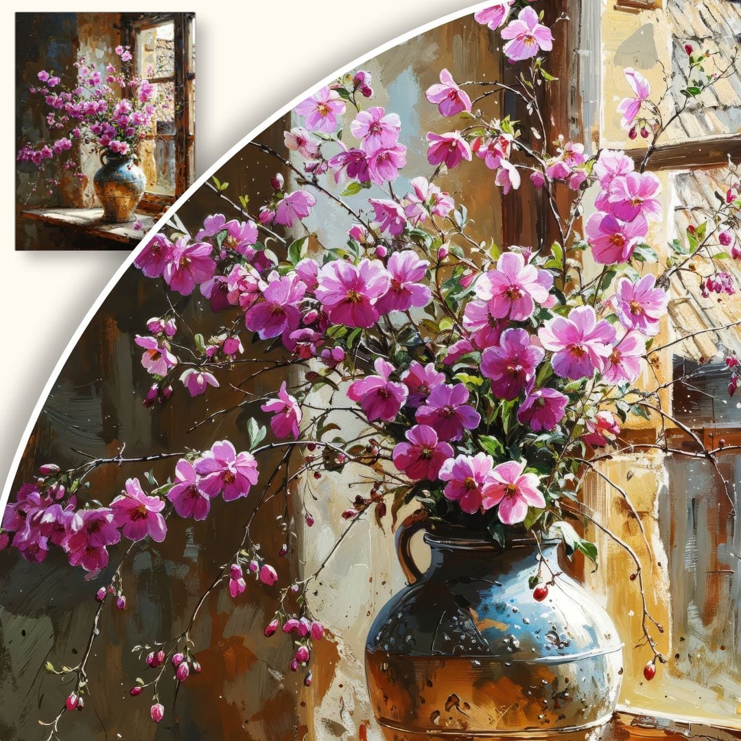 Impresjonistyczne martwe natury były niezwykle popularne pod koniec XIX wieku. Inspiracją dla takich kompozycji byli twórcy tacy jak Pierre-Auguste Renoir, Claude Monet czy Édouard Manet, którzy z pasją oddawali na płótnach magię światła i koloru. Obrazy z motywem kwiatów na parapecie cieszyły się uznaniem jako wyraz celebracji codzienności i piękna ukrytego w prozaicznych chwilach.
