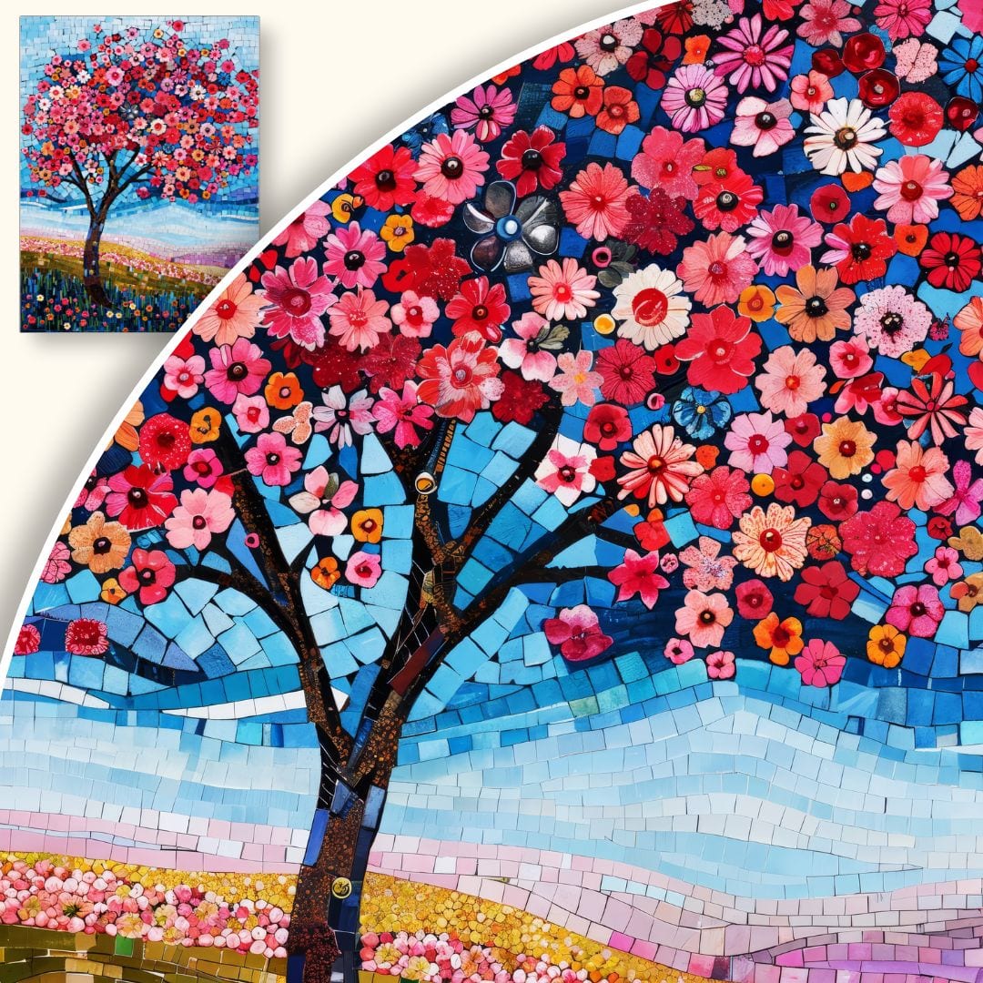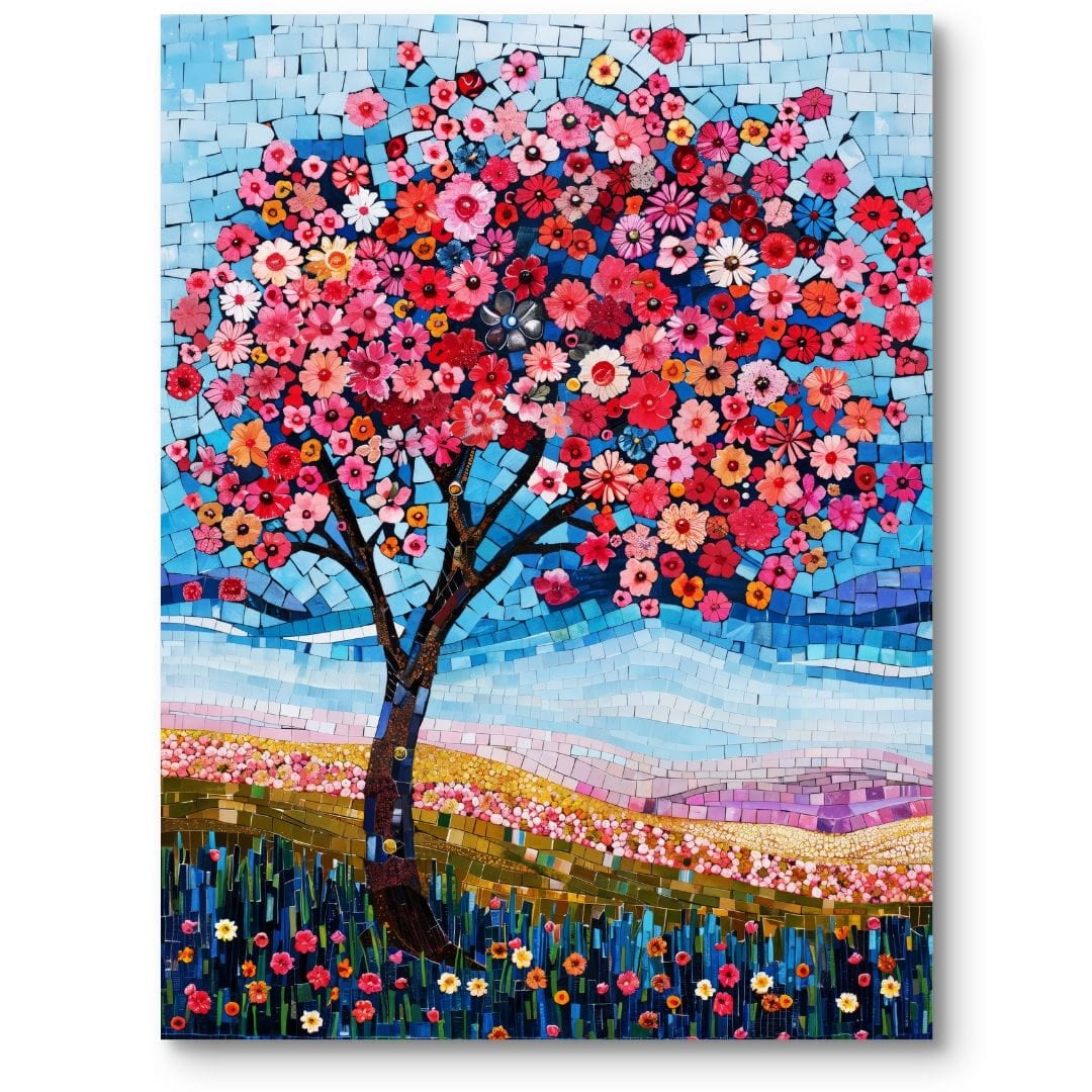 Motyw drzewa, rozbudowanego i obficie kwitnącego, od wieków inspiruje twórców na całym świecie – od starożytnych mozaik, poprzez impresjonistyczne krajobrazy Gustava Klimta i Vincenta van Gogha, aż po współczesną, dekoracyjną sztukę użytkową. Połączenie bogatego kolorytu z techniką mozaikową nawiązuje zarówno do klasycznych rzymskich i bizantyjskich mozaik, jak i do dzieł współczesnych artystów tworzących prace z drobnych fragmentów szkła lub ceramiki.