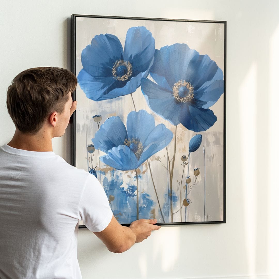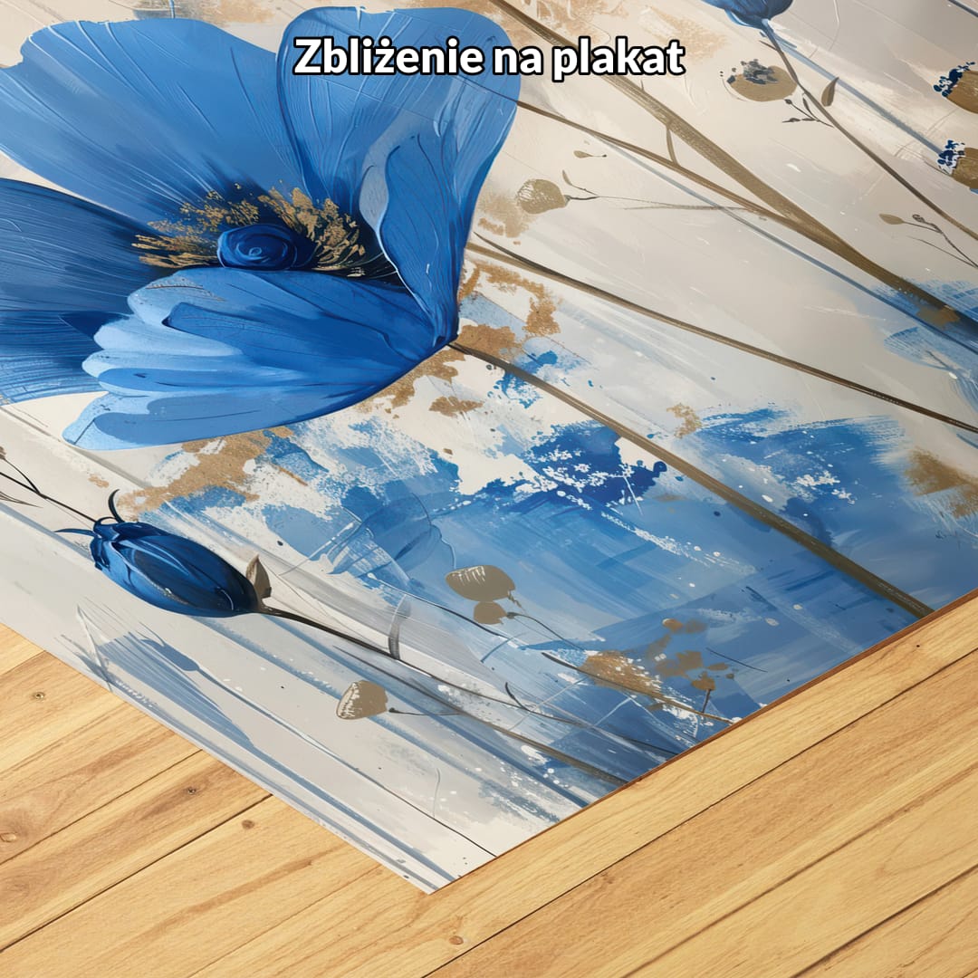 Obraz emanuje ciszą i wewnętrznym spokojem, zamieniając każde wnętrze w oazę relaksu. Niebieskie maki są tu symbolem marzeń, ukojenia i osobistego spełnienia.