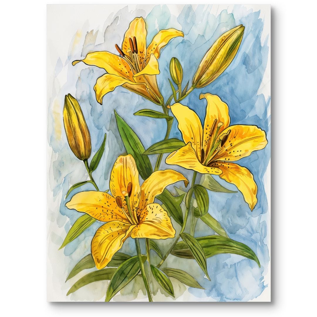 Lilie, jako temat w malarstwie, od wieków inspirowały artystów swoją elegancją i bogatą symboliką. Żółty odcień tych kwiatów często wiązany jest z radością, odrodzeniem oraz dobrą energią. W sztuce botanicznej niezwykłą popularność zdobywały szczególnie w epokach wiktoriańskiej i secesyjnej – przykładem są prace takich artystów jak Pierre-Joseph Redouté, znany jako „Rafael kwiatów”, który z niezwykłą precyzją uwieczniał motywy florystyczne przy użyciu akwareli.
