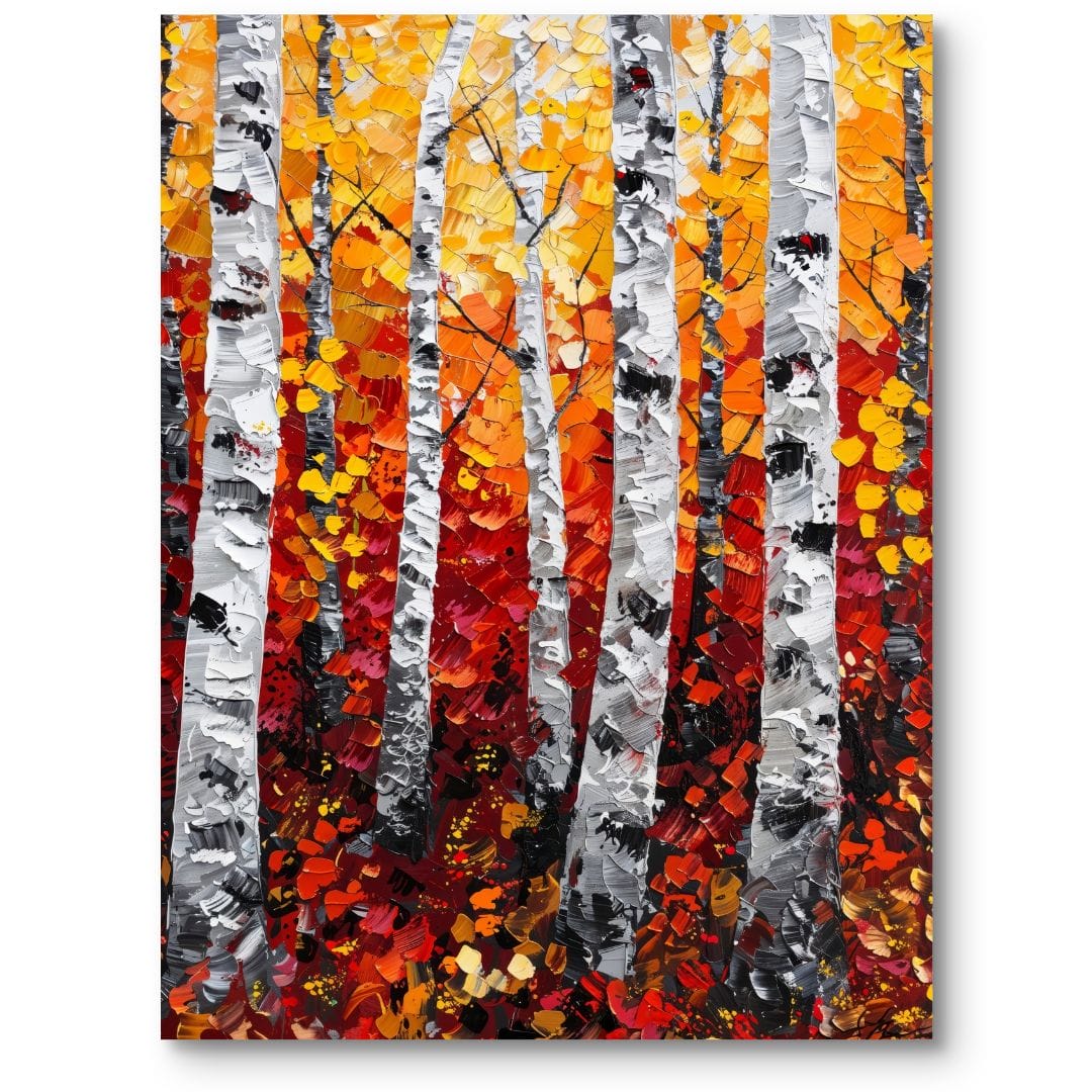 Obraz tętni energią i optymizmem, przenosząc pozytywne emocje do każdego wnętrza. Jesienny krajobraz staje się tu metaforą zmian, pełni i obfitości, a dynamiczne barwy równoważą lekką nostalgię przemijającej pory roku.