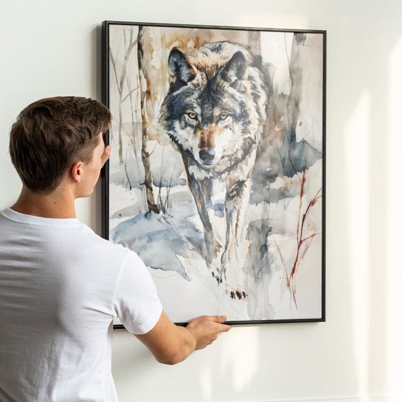 Wilk bywa postrzegany jako strażnik natury – jego obecność w sztuce może stać się inspirującym przypomnieniem o potrzebie harmonii między człowiekiem a środowiskiem. To doskonały wybór dla osób, które cenią świadome dekorowanie przestrzeni z przesłaniem.