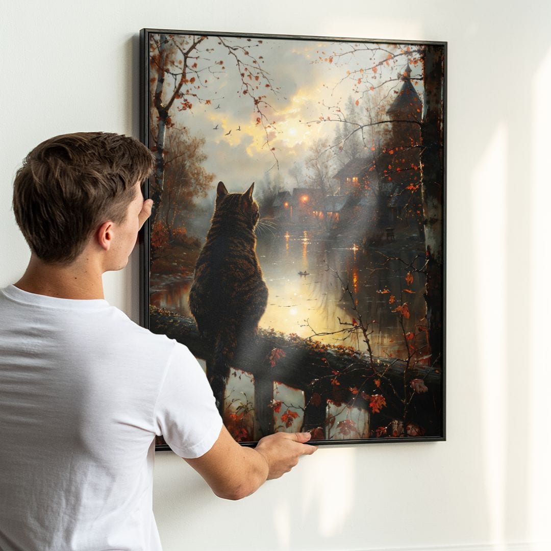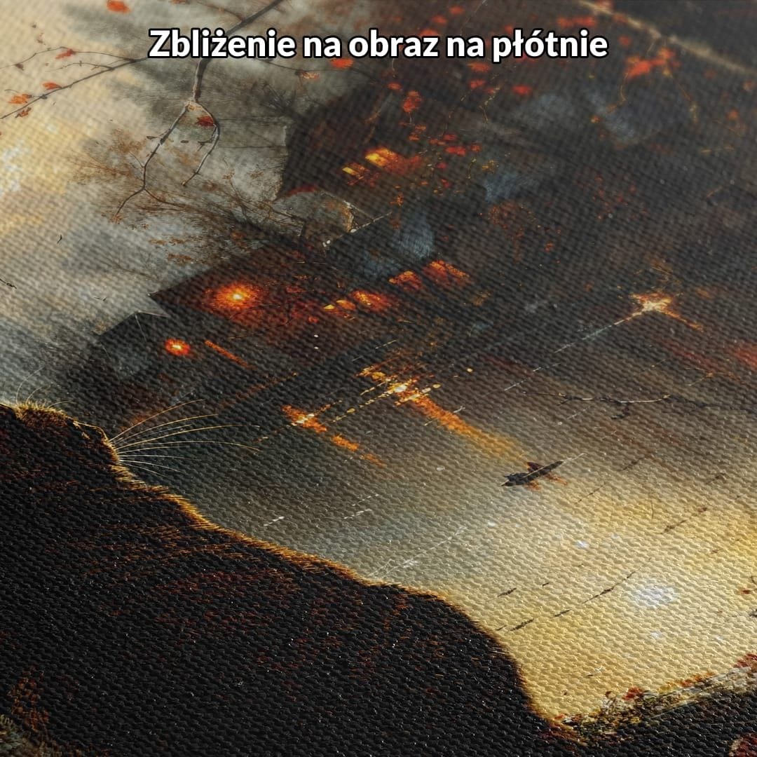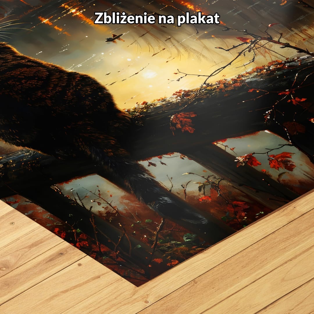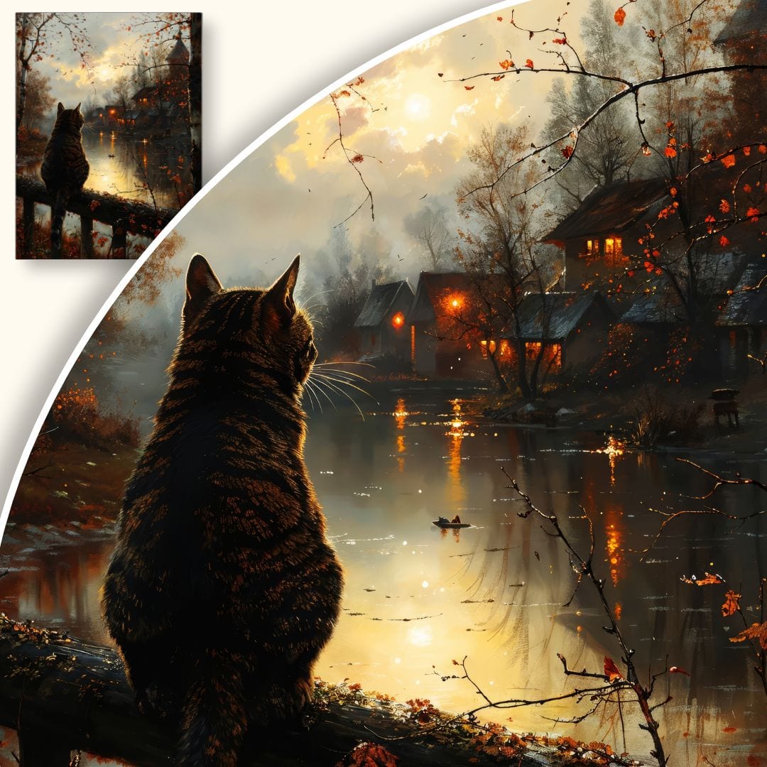 Jesienne pejzaże od wieków inspirują artystów, których twórczość oddaje ulotność przemijającego czasu oraz wyjątkową grę światła i cieni. Kot zaś od dawna obecny jest w sztuce jako symbol wolności, intuicji i niezależności ducha – obecność tego tajemniczego zwierzęcia w kompozycji dodaje obrazowi głębi znaczeniowej.