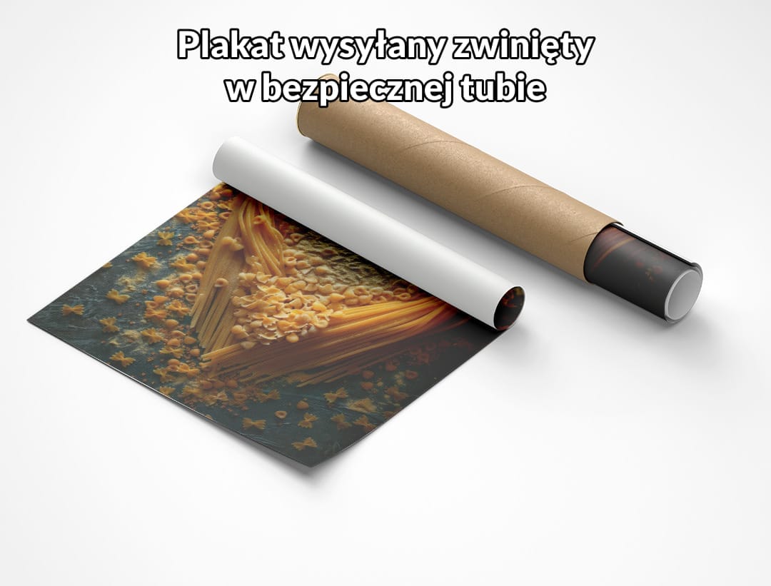 To wyjątkowy przykład fotografii kulinarnej w wydaniu makro – każdy szczegół makaronu i drobiny mąki uchwycono z niezwykłą precyzją, co podkreśla cierpliwość i kunszt autora. Plakat zachwyca realistycznym odwzorowaniem faktur oraz intensywnością detali.