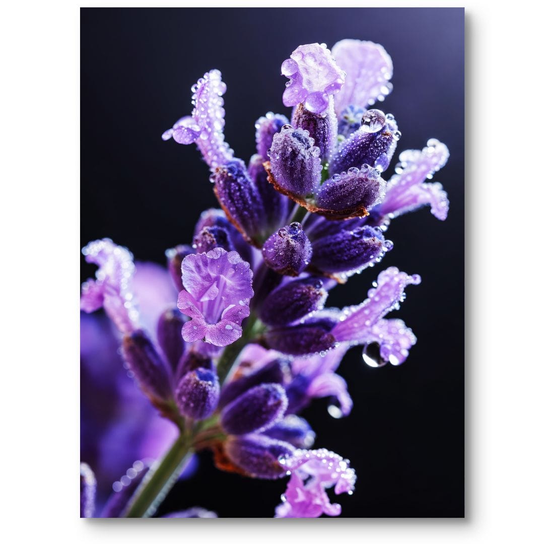 Ten plakat to hipnotyzujące zbliżenie na kwiat lawendy, ukazujące każdy, nawet najdrobniejszy detal tej niezwykle subtelnej rośliny. Pokryte kropelkami rosy płatki emanują świeżością i naturalnym urokiem, przyciągając wzrok i subtelnie wprowadzając do wnętrza atmosferę harmonii oraz spokoju.