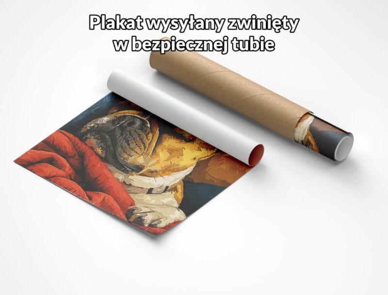 Ten plakat ukazuje pełen uroku portret buldoga, wyglądającego, jakby właśnie delektował się chwilą odpoczynku po dniu pełnym przygód. Motyw zwierząt od dawna inspiruje artystów, a tu mamy wyjątkowe ujęcie psa, które z pewnością oczaruje wszystkich miłośników czworonogów. Zwróć uwagę na misternie oddaną strukturę sierści oraz wyrazistą mimikę – to one nadają temu plakatowi szczególnego charakteru i ciepła.