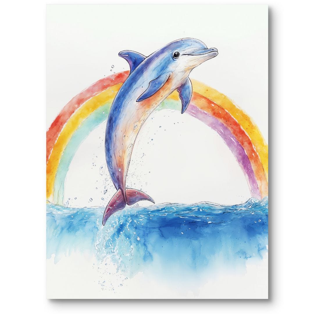 Motyw delfina w sztuce i designie często pojawia się jako symbol inteligencji, komunikacji i harmonii z naturą. Już w antycznej Grecji delfiny były postrzegane jako opiekunowie żeglarzy i zwiastuny szczęścia. Współcześnie, ich wizerunki niosą ze sobą lekkość i swobodę – uczucia doskonale oddane przez kolorowe akwarele na tym plakacie.