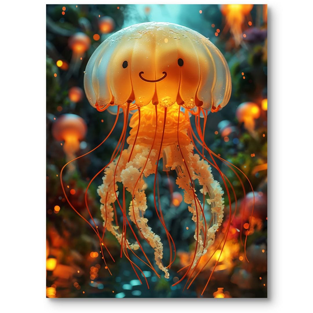- Plakat z uśmiechniętą meduzą w ciepłej kolorystyce