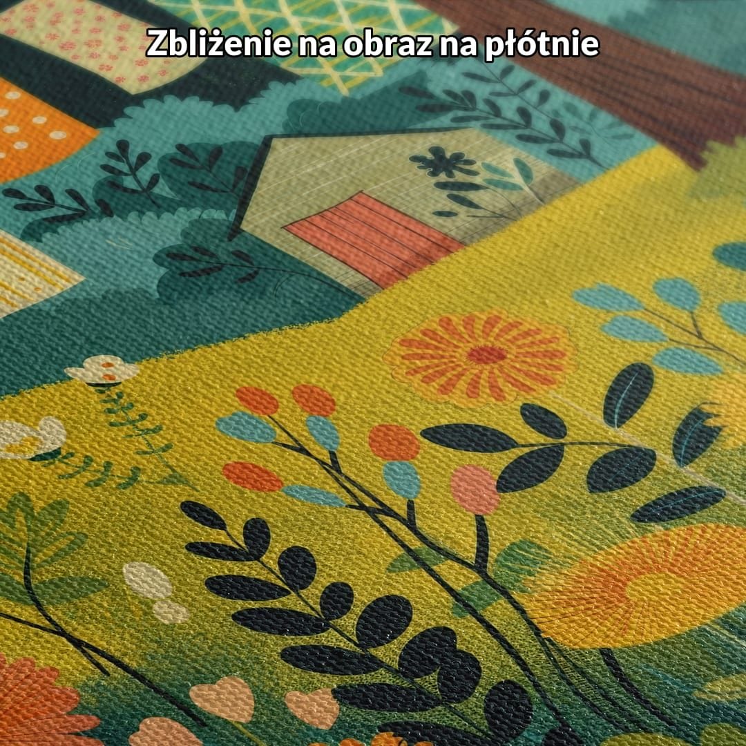 - Ilustracyjny plakat z motywem malowniczej wsi.