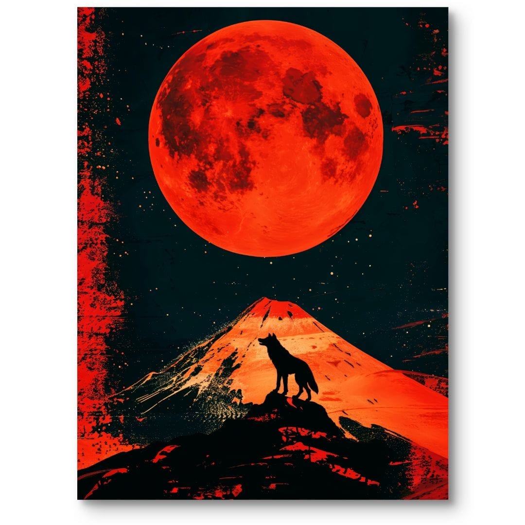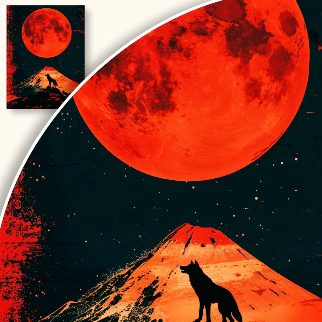 Motyw wilka na tle czerwonego księżyca jest bliski kulturze japońskiej, w której wilk od wieków uważany był za strażnika lasów i symbol odwagi. Góra Fuji to nie tylko narodowy symbol Japonii, ale także inspiracja dla artystów takich jak Katsushika Hokusai. Tego rodzaju połączenie przyrody i silnych symboli jest chętnie wykorzystywane zarówno w tradycyjnych malowidłach, jak i nowoczesnej grafice.