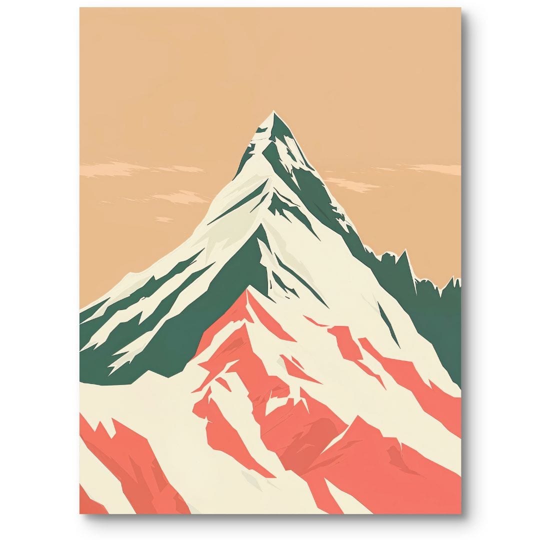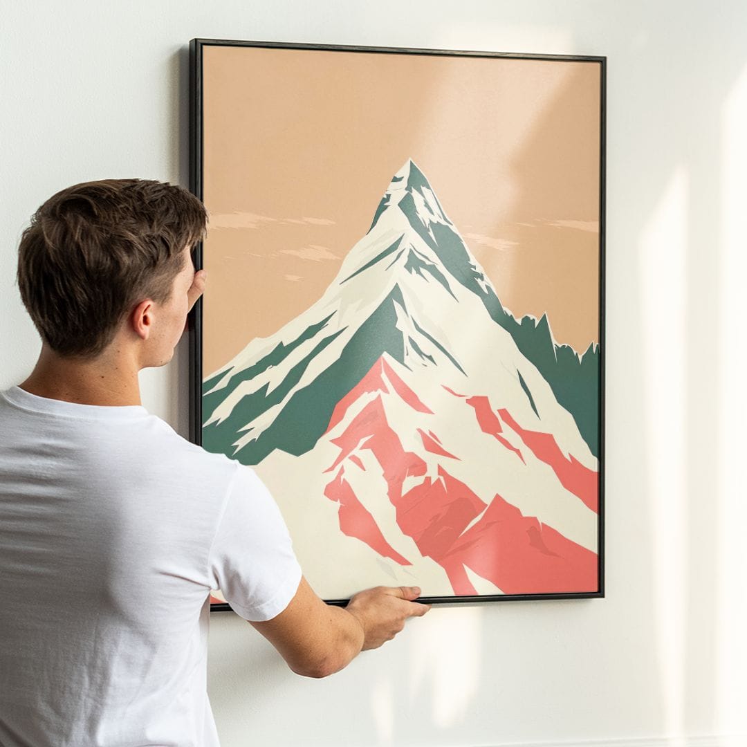 Motyw gór od wieków fascynuje artystów – od romantycznych pejzaży po nowoczesną abstrakcję. Abstrakcyjne przedstawienie krajobrazu, przypominające styl Malewicza czy Hilmy af Klint, pozwala na intelektualną grę z formą i kolorem. Plakaty tego typu często odwołują się również do czasów Bauhausu, gdzie geometryczna prostota i eksperyment z barwą przewyższały realizm.