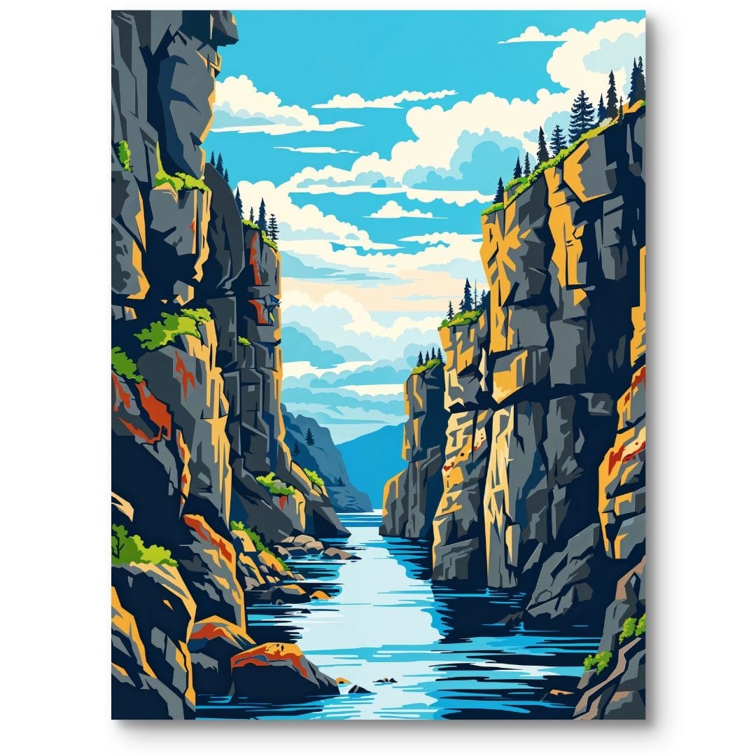 Kaniony i dziewicza natura od lat fascynują artystów – od akwarelistów po twórców cyfrowych. Ten plakat nawiązuje do obrazów wielkich pejzażystów, takich jak Albert Bierstadt czy Thomas Moran, którzy w XIX wieku zasłynęli wspaniałymi wizjami amerykańskich dolin i przełomów rzek. Współczesne techniki cyfrowe pozwalają artystom wydobyć każdy detal i oddać całe bogactwo kolorów przyrody, przenosząc magię natury wprost na ścianę Twojego domu.