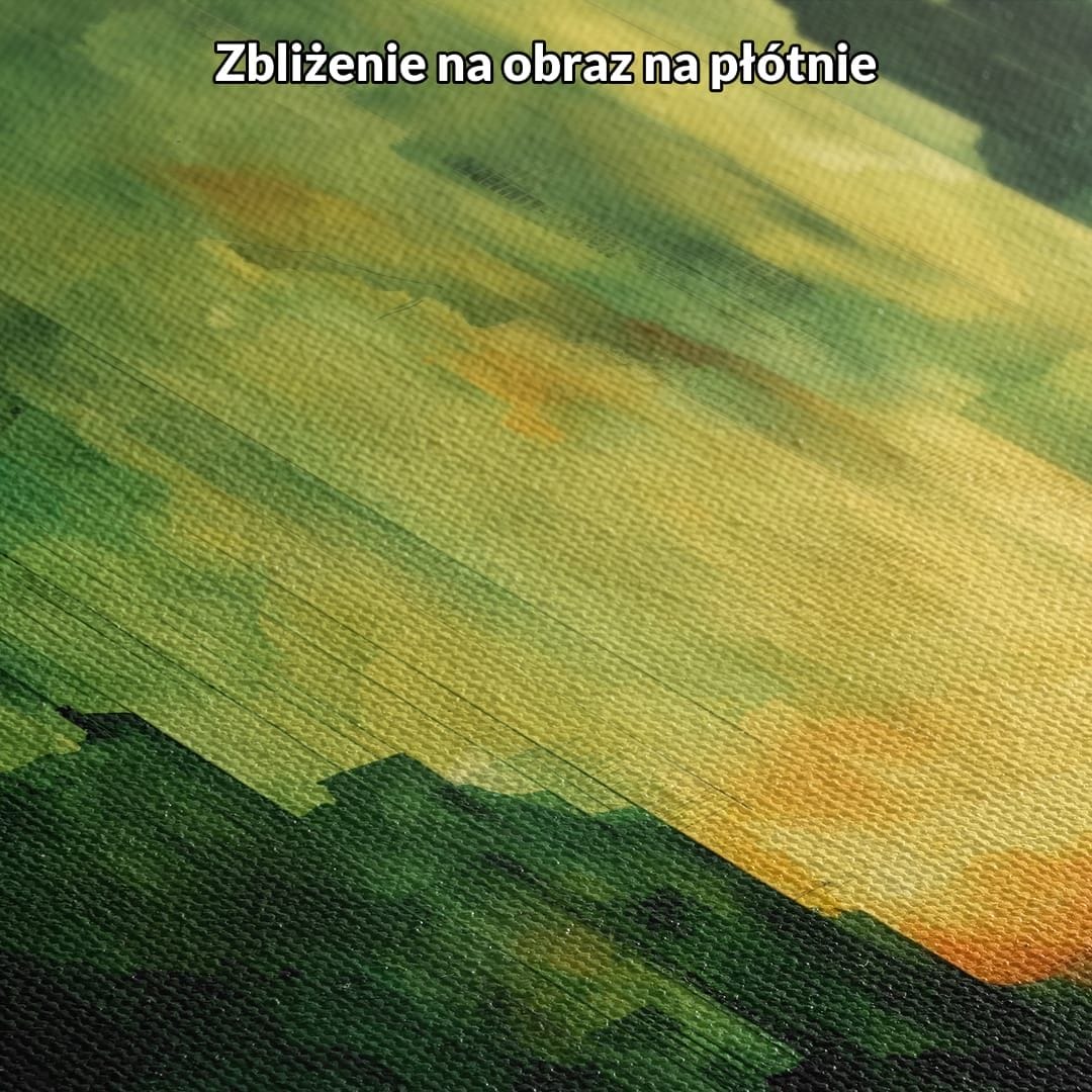 Kolory użyte w kompozycji – zieleń i żółć – mają pozytywne oddziaływanie na samopoczucie, pomagając budować poczucie harmonii i świeżości w przestrzeni. Abstrakcyjne pejzaże są cenione zarówno przez profesjonalnych projektantów wnętrz, jak i miłośników nowoczesnego designu – świetnie wpisują się w aktualne trendy dekoratorskie.