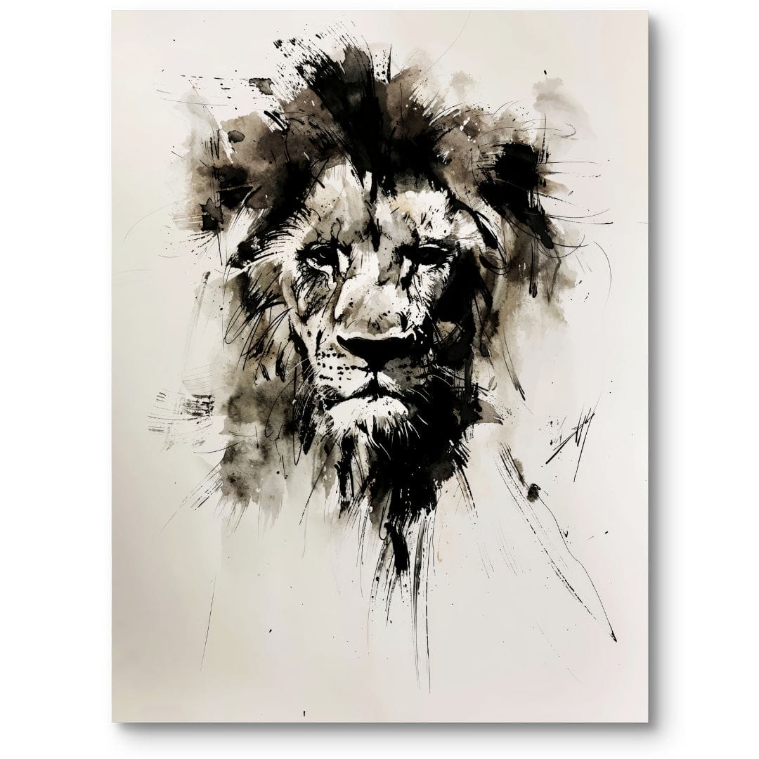 Plakat przedstawia ekspresyjny, intrygujący portret lwa – króla zwierząt, będącego symbolem siły, władzy i majestatu. Dynamiczna kompozycja, pełna energicznych linii i wyrazistych plam, przyciąga uwagę i buduje aurę tajemniczości. Ten nowoczesny plakat na ścianę idealnie podkreśla motywy odwagi i niezależności, nadając wnętrzu wyjątkowego charakteru.