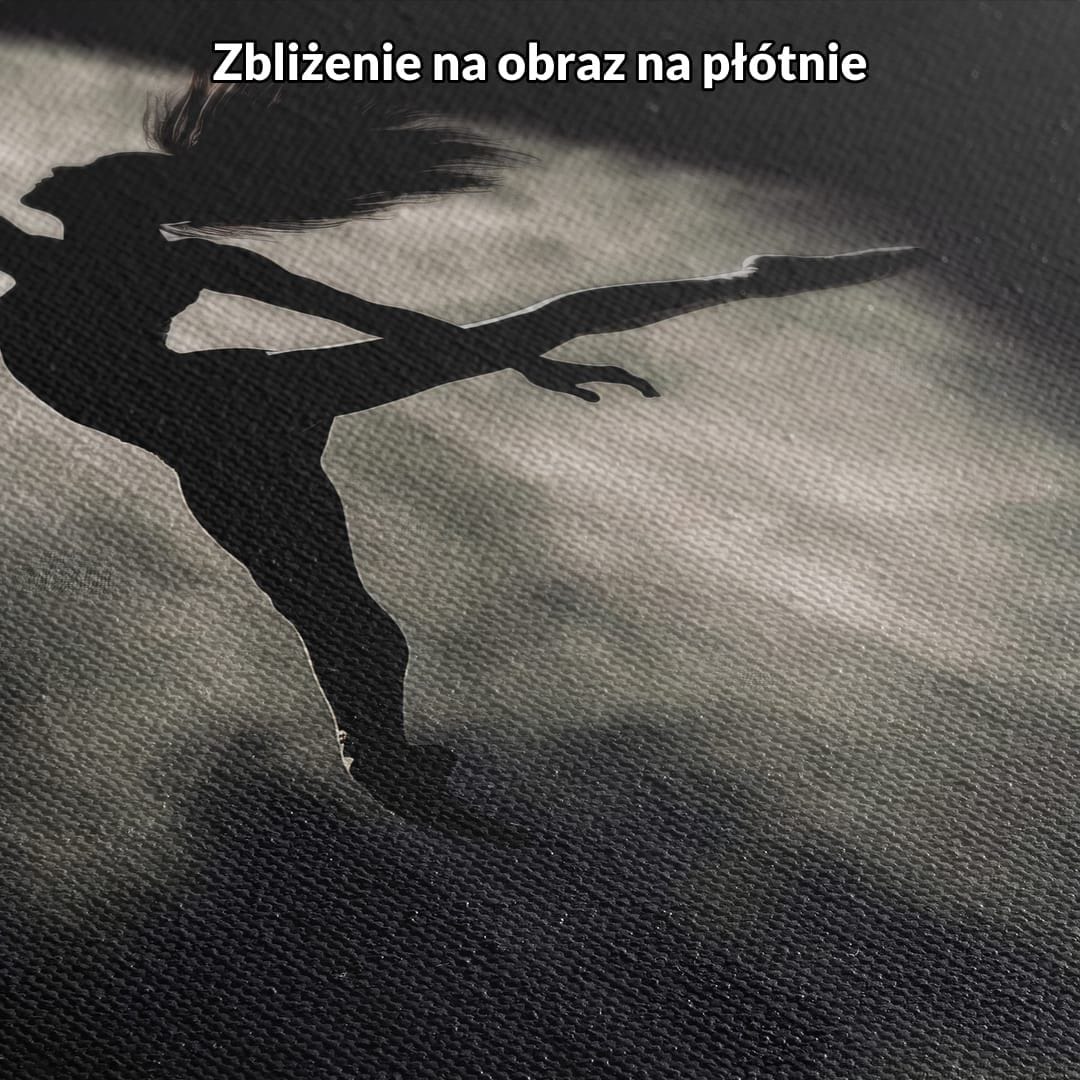 - Czarno-biały plakat na ścianę z dynamiczną sylwetką tancerki baletowej