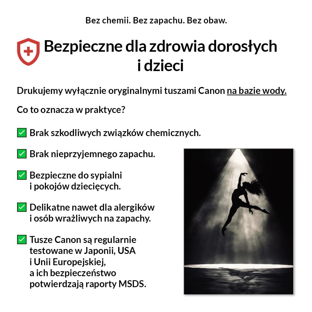 My drukujemy wyłącznie na pigmentowych tuszach Canon LUCIA PRO, bezpiecznych, bezzapachowych i certyfikowanych.