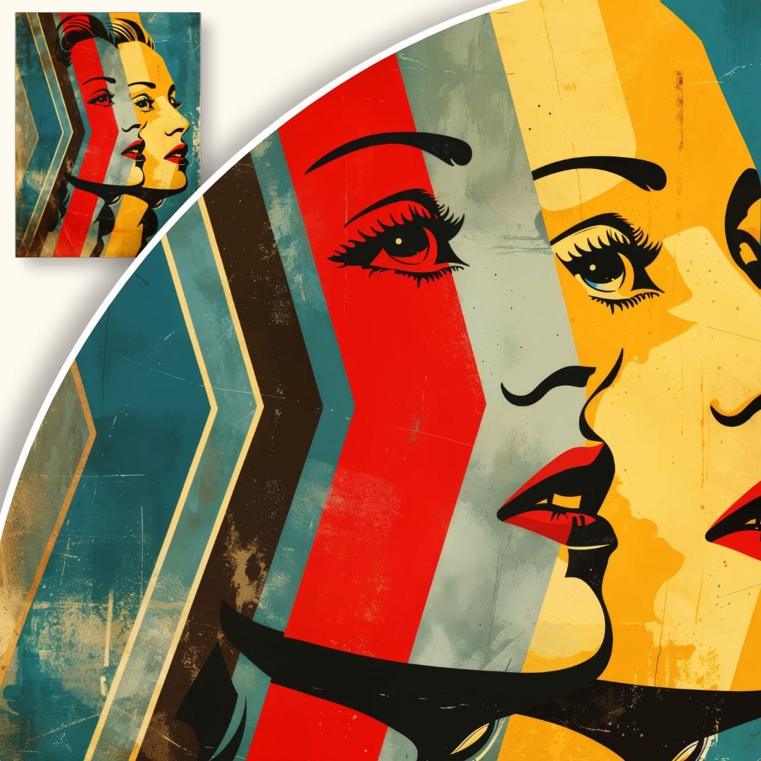 Styl pop-art, zapoczątkowany przez Andy’ego Warhola i Roya Lichtensteina, wprowadził sztukę do codziennego życia poprzez wykorzystanie motywów znanych z kultury masowej. Portrety kobiece w intensywnych kolorach to jeden z najważniejszych motywów tego nurtu; podziwiając ten plakat, przywołujesz ducha lat 60. i 70. – epoki przełamywania schematów i celebrowania indywidualizmu.