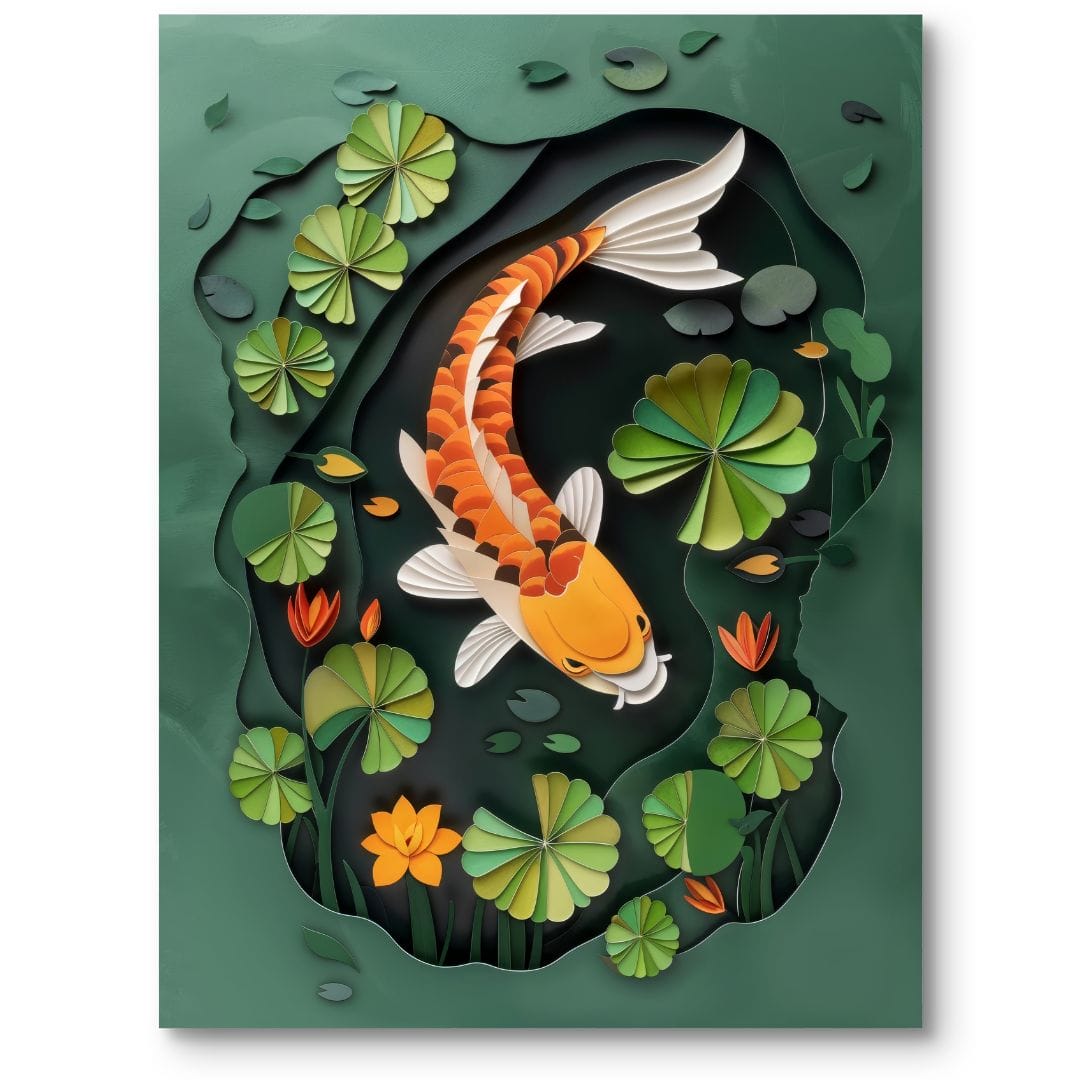 Motyw ryby koi od wieków obecny jest w azjatyckiej sztuce oraz tradycji. W kulturze japońskiej koi uosabia ducha wytrwałości i triumfu nad przeciwnościami losu, a sceny z tymi rybami często pojawiały się na drzeworytach ukiyo-e czy w malarstwie tuszowym. Plakaty i obrazy inspirowane techniką papercraft harmonizują współczesną estetykę z ponadczasową symboliką Dalekiego Wschodu, czyniąc z nich nie tylko ozdobę, ale i element osobistej inspiracji.