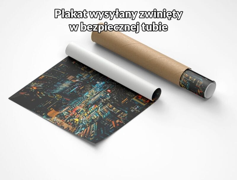 - Dobrze prezentuje się w dużym formacie jako centralny punkt na ścianie lub w zestawie z innymi plakatami o tematyce miejskiej.