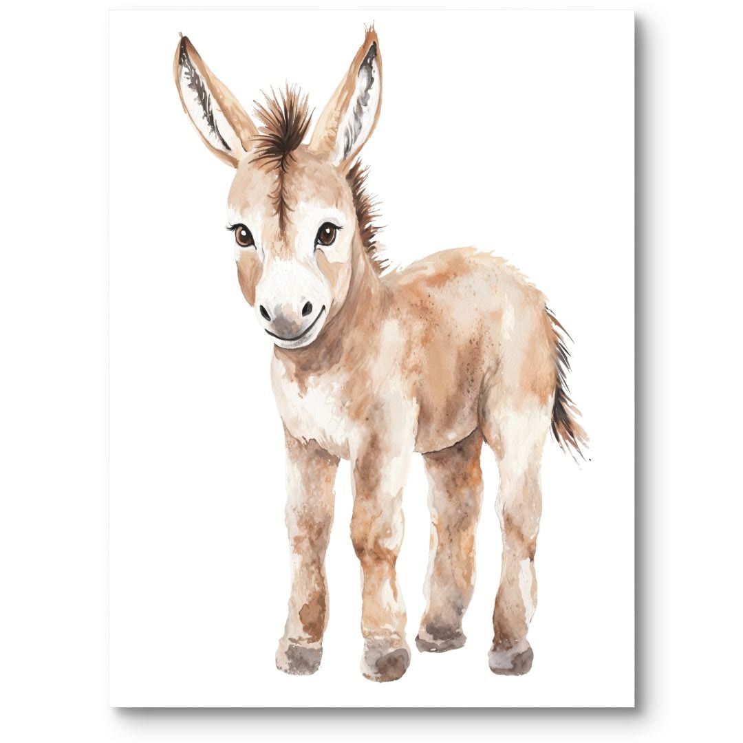 - Plakat z uroczym, uśmiechniętym osiołkiem.