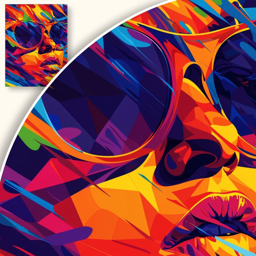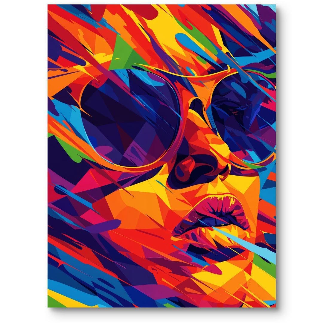 Styl pop-art często wykorzystywał portrety kobiet i znane wizerunki, by przewrotnie komentować współczesne społeczeństwo oraz fascynację mediami masowymi. Noszenie okularów przeciwsłonecznych przez postać na plakacie to nie tylko modny detal — to także symbol autentyczności i odważnego spojrzenia na świat.