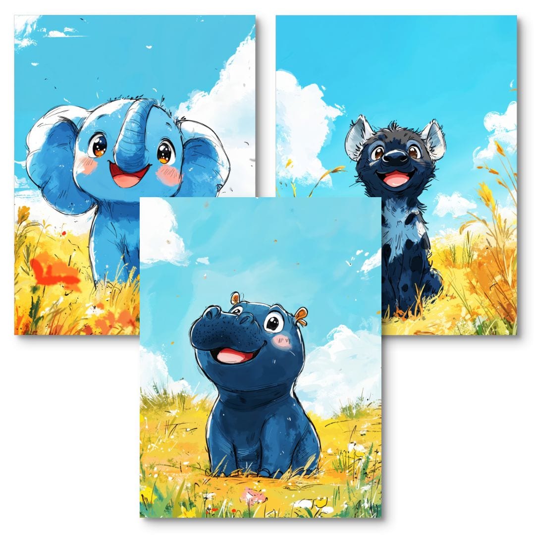 Zestaw 3szt. - plakaty do pokoju dziecka dla dziewczynki zwierzęta lew 89,00 zł – 159,00 złZakres cen: od 89,00 zł do 159,00 złZestaw 3szt. – plakaty dla dziecka obrazki zwierzęta słoń hipopotam