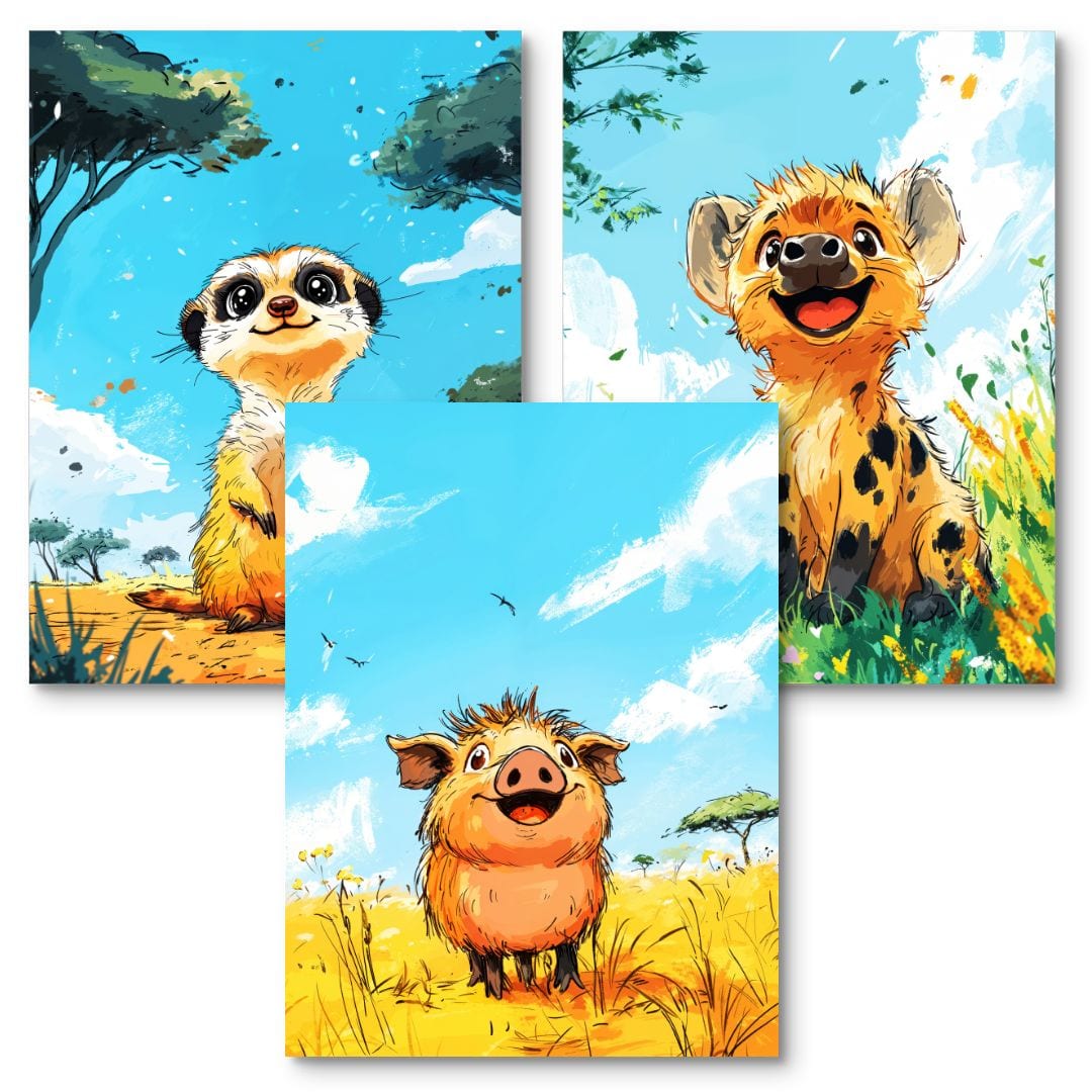 Zestaw 3szt. - plakaty do pokoju dziecka zwierzęta struś ptak 89,00 zł – 159,00 złZakres cen: od 89,00 zł do 159,00 złZestaw 3szt. – plakaty do pokoju dziecięcego zwierzęta świnka hiena