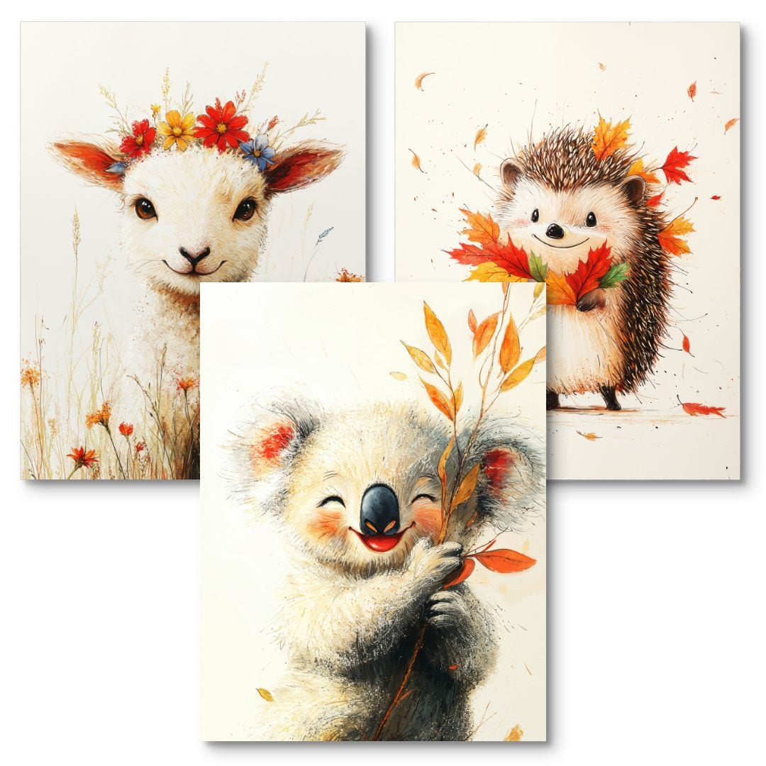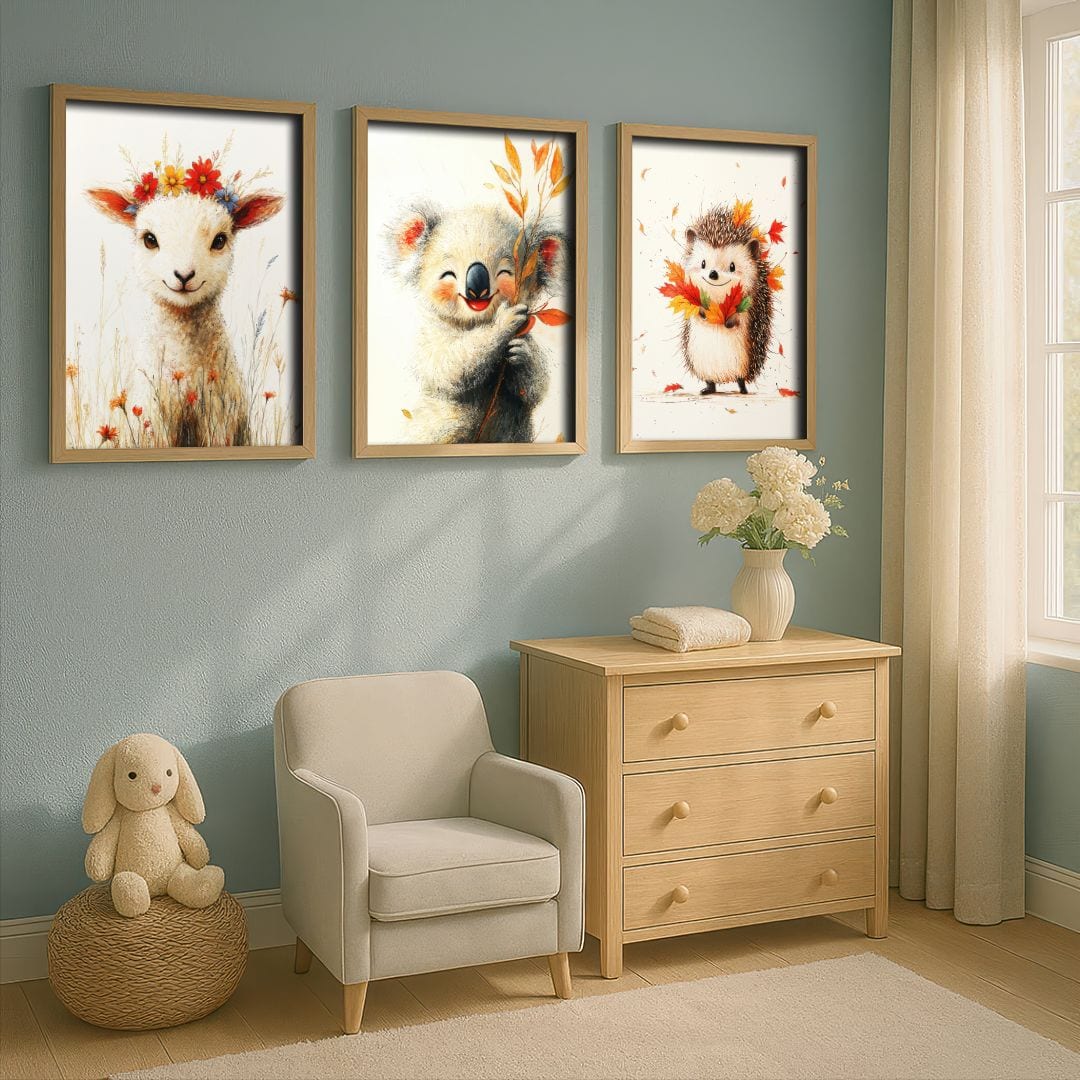 Zestaw 3szt. - plakaty do pokoju dziecięcego zwierzęta zając żyrafa lis 89,00 zł – 159,00 złZakres cen: od 89,00 zł do 159,00 złZestaw 3szt. – plakaty do pokoju dziecka niemowlaka zwierzęta owca koala